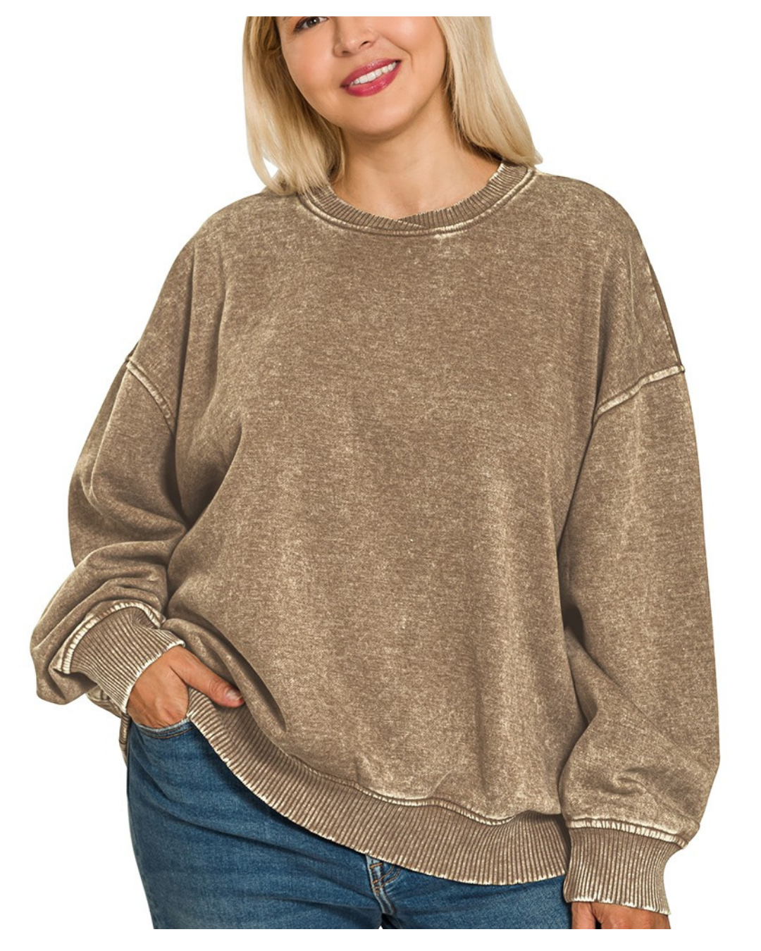 Stay warm and stylish this season with this oversized fleece pullover featuring a trendy acid wash finish. Designed with comfy balloon sleeves and a unique overlap neckband, it offers both relaxed comfort and eye-catching detail. Perfect for layering on chilly fall days or curling up by the fire during the holidays, this pullover blends laid-back vibes with cozy warmth in every wear.