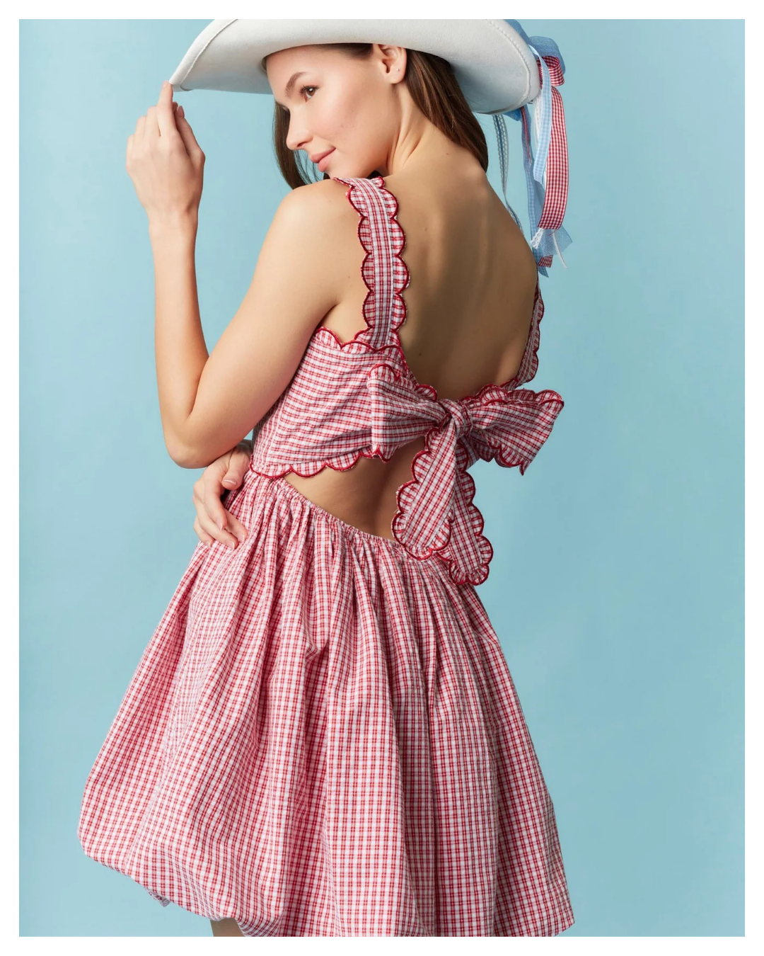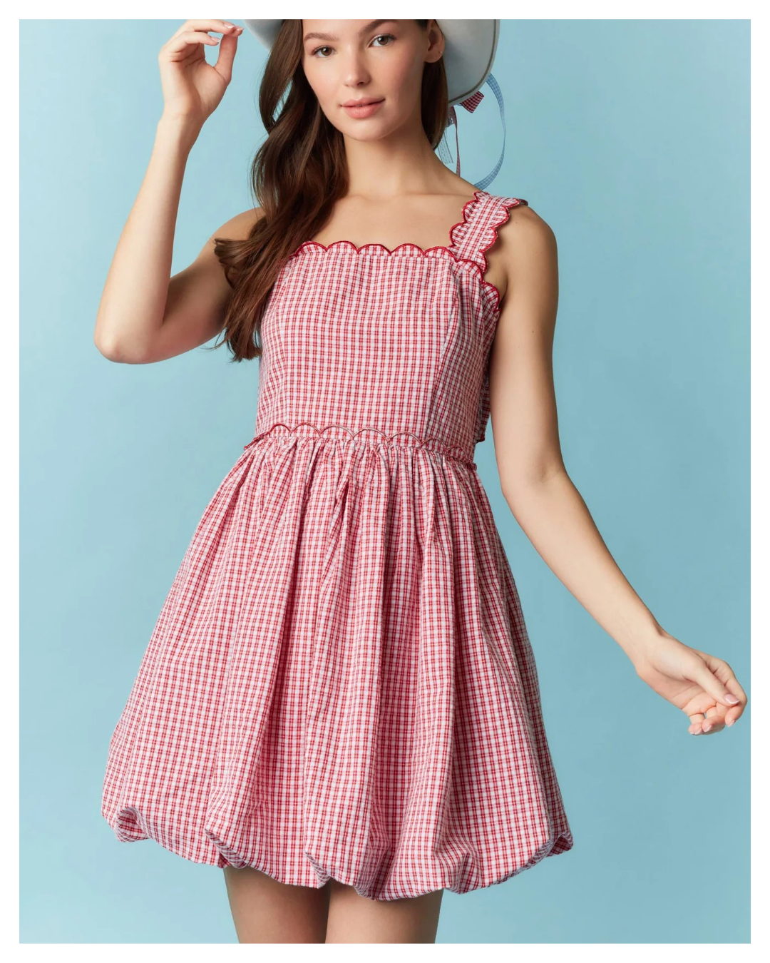 Sweet with a Southern twist, the Scallop Embroidery Detail Gingham Mini Dress is your new go-to for sunny strolls and patio brunches. Featuring a classic pink gingham print, this mini dress is trimmed with delicate scalloped embroidery along the neckline and hem for a feminine finish. The lightweight fabric and flattering fit make it an easy choice for warm days, while the subtle details add just the right touch of charm. Pair it with your favorite white boots or sandals for an effortlessly pretty look.