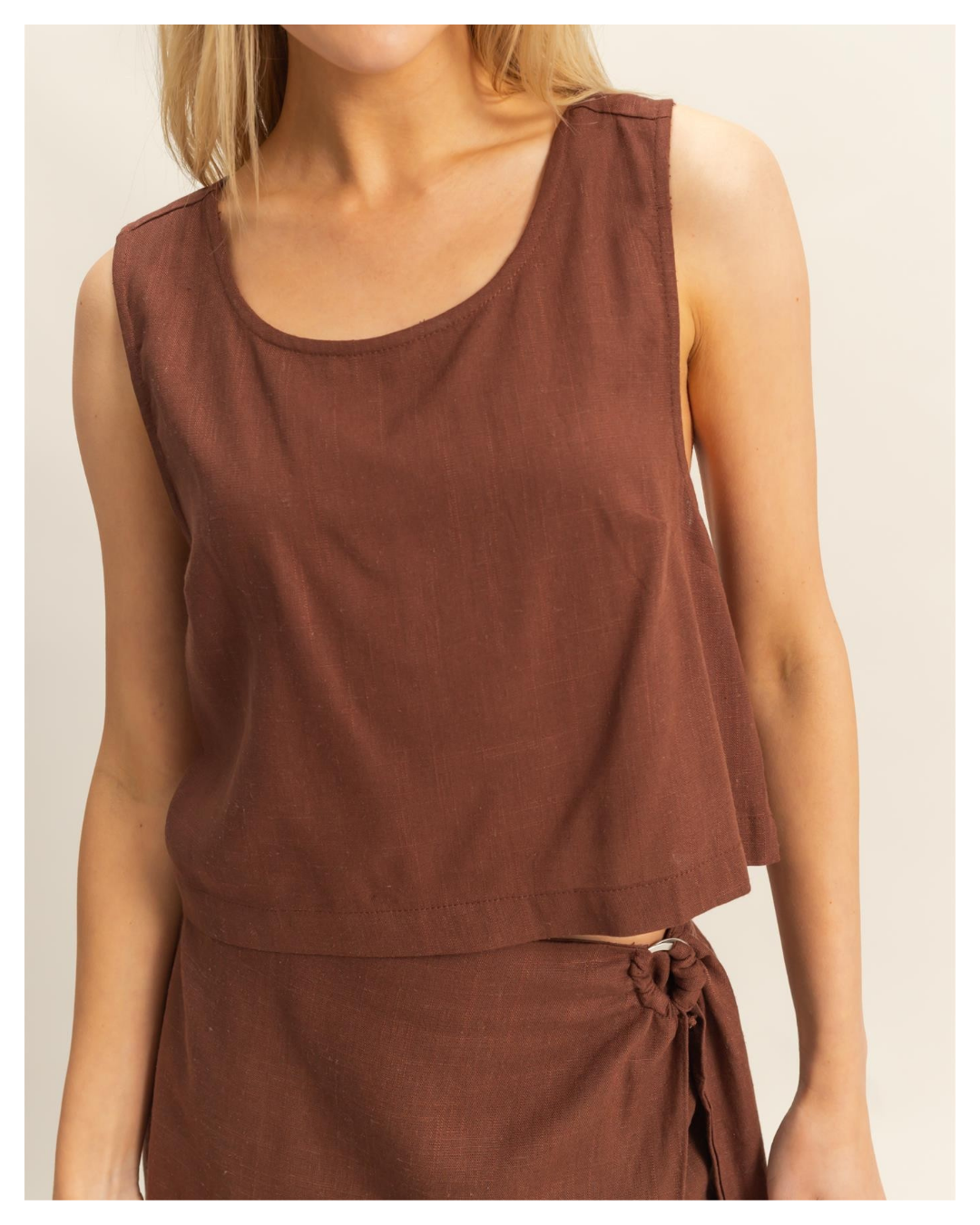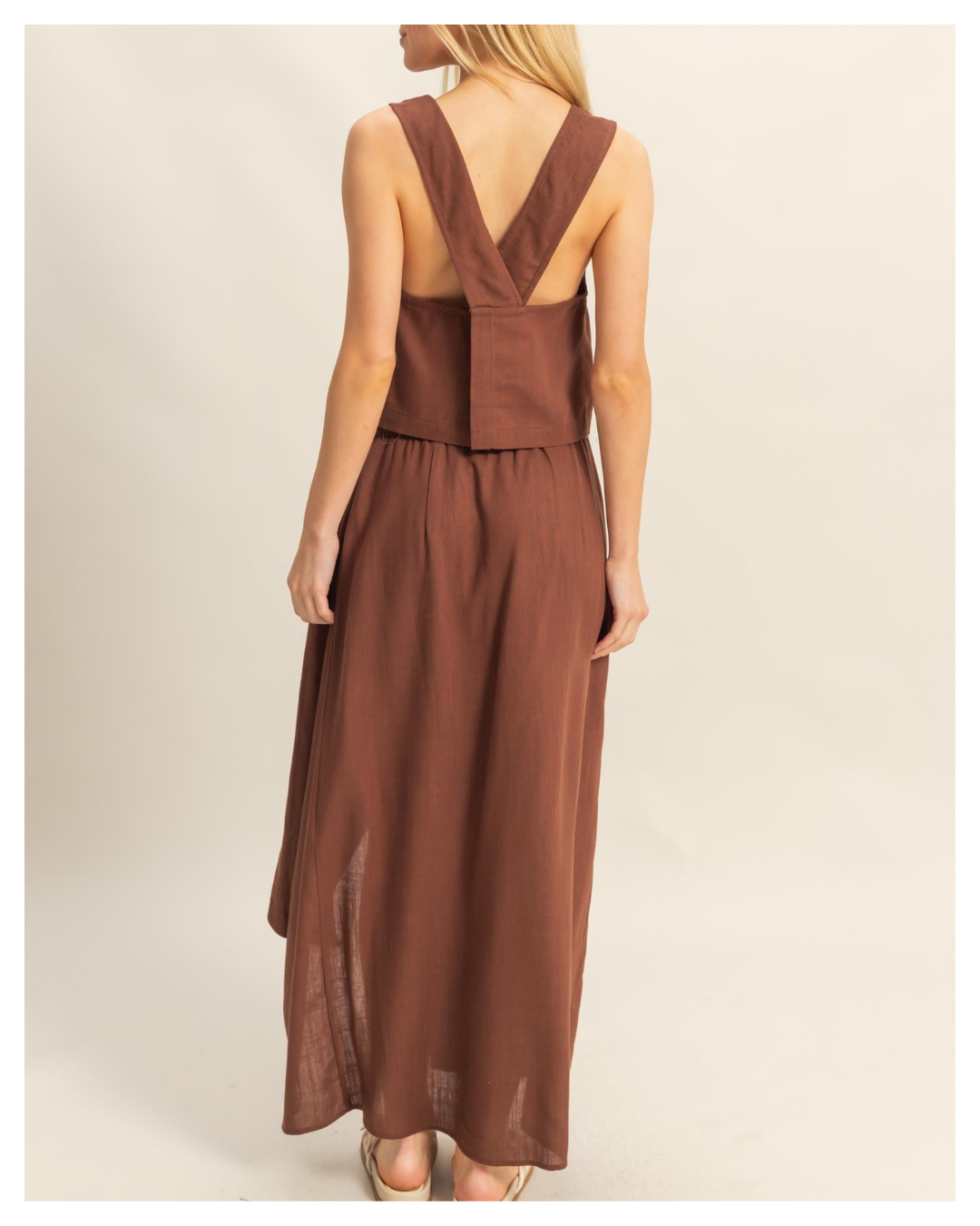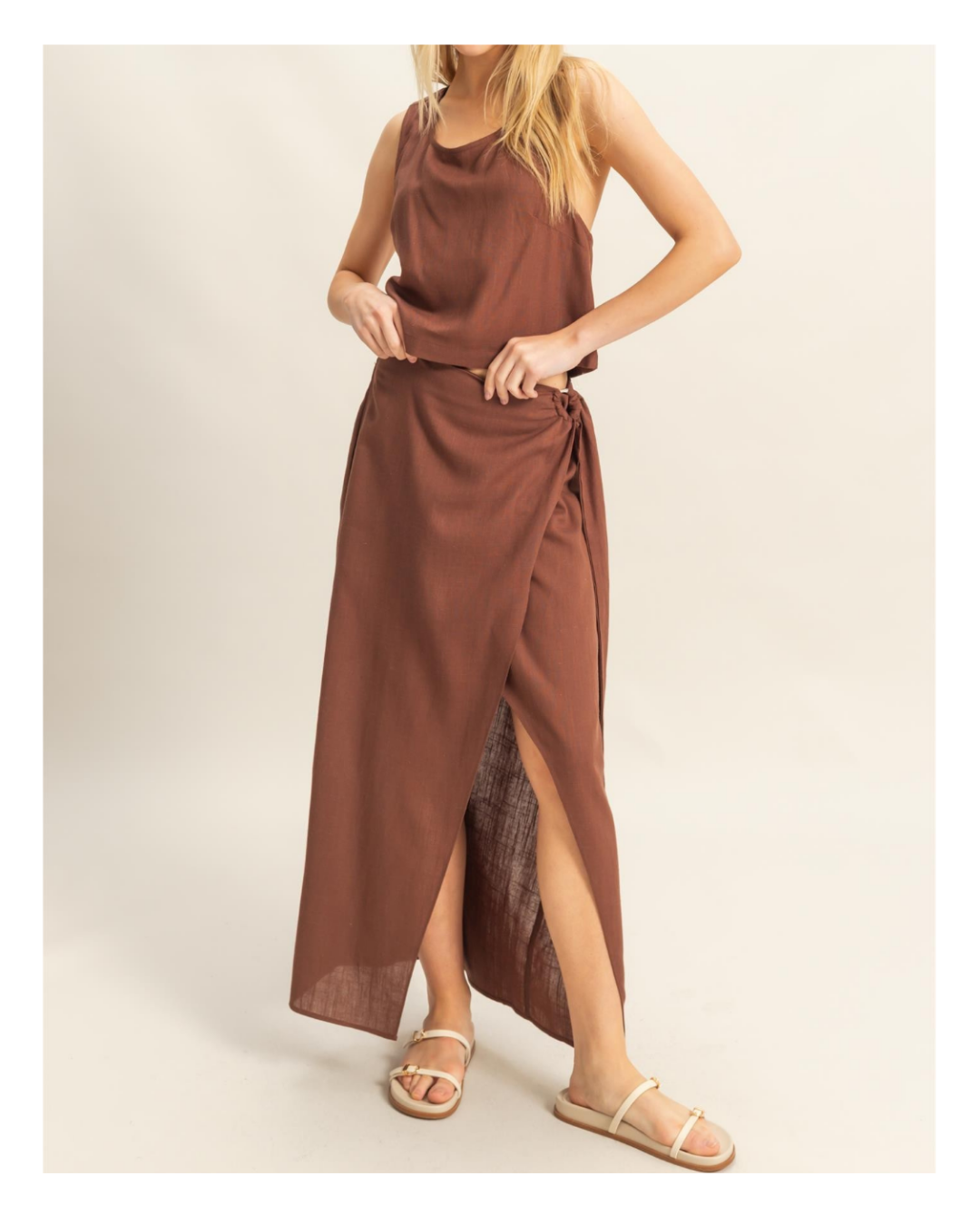 Turn heads in this rust-hued wrap skirt set featuring a cropped tank with crisscross back detail and a flowy high-waisted skirt with tie front. Part of The Early Ember Collection, it’s the perfect blend of breezy and bold.