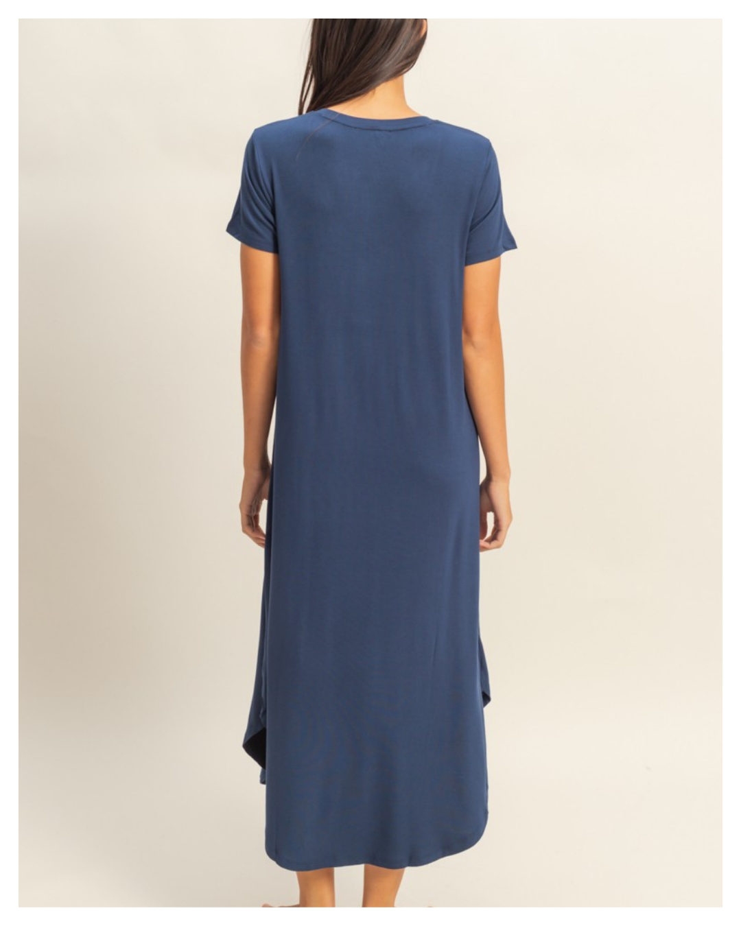 Made for golden hour strolls and small-town charm, this midi dress features a flattering V-neckline and easy short sleeves. The relaxed fit skims your natural silhouette, while the curved hemline adds a touch of movement with every step. Whether you're headed to the farmers market or a sunset drive, this one’s an everyday favorite with timeless appeal.